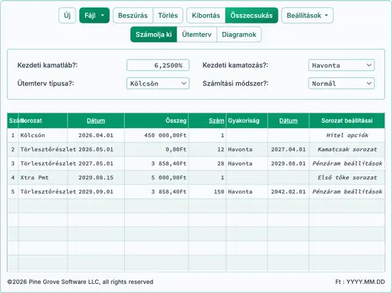 - Törlesztési & befektetési ütemtervek