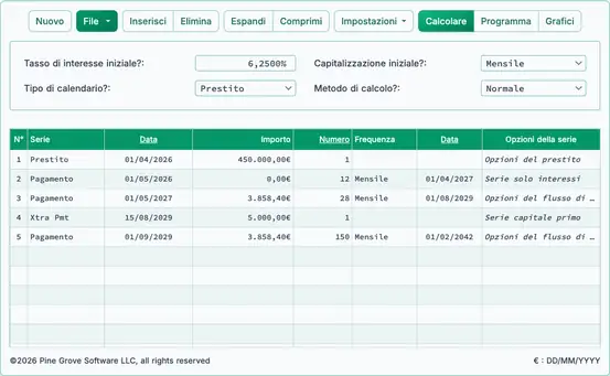 Quando un mutuo non segue un piano di pagamento convenzionale, è necessario un calcolatore finanziario che supporti l’inserimento flessibile di flussi di cassa irregolari. L’Ultimate Financial Calculator consente più flussi di pagamento con date e importi variabili.