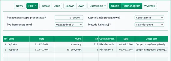 - Ustaw Typ harmonogramu na Oszczędności.