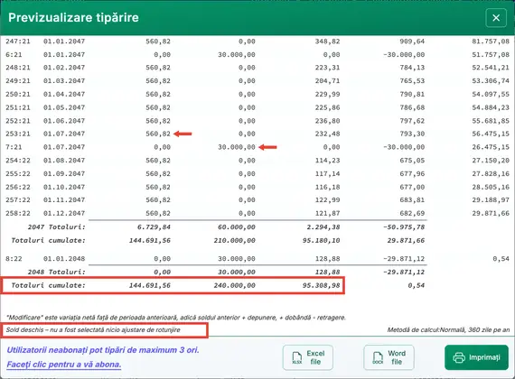 - „Data de sfârşit” calculată va fi decembrie 1, 2047.