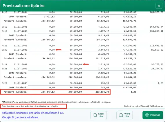 - Faceţi clic pe , apoi selectaţi . Setaţi “Rotunjire” la Sold deschis — fără ajustare.