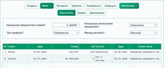 - Установите Тип графика в значение Сбережения.